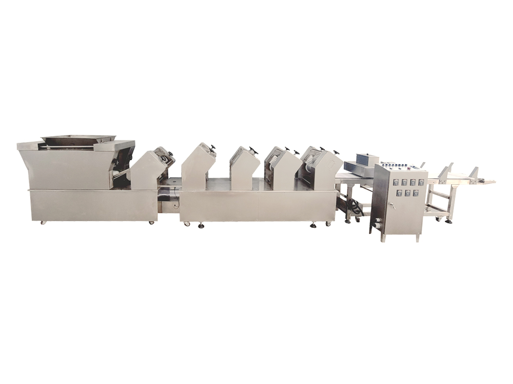 3、多組壓延機(jī)為變頻控制,每一道壓輥都采用單機(jī)驅(qū)動,通過測距傳感器,實(shí)現(xiàn)自動面帶張緊控制,多輥聯(lián)動。進(jìn)一步簡化操作,保證壓延比,滿足多種工藝要求,加工出質(zhì)量穩(wěn)定的面帶。